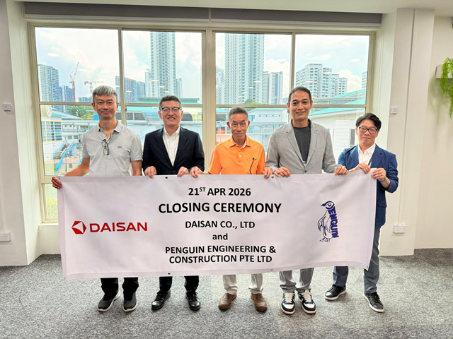 Daisan Co., Ltd. officially concluded its acquisition of Penguin Engineering & Construction Pte. Ltd. on 21 April 2026. The closing ceremony, marking the integration of the Singapore-based engineering specialist into the Daisan Group, was attended by Mr. Fujita Taketoshi (Representative Director, Daisan) and Mr Eng Swee Yeng (Managing Director, Penguin).